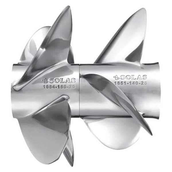 The Solas 1654-160-21 is a high-performance stainless steel front propeller specifically engineered for Mercruiser Bravo Three dual prop stern drive systems. This precision-manufactured propeller is designed to work in tandem with the rear propeller to deliver superior handling, acceleration, and fuel efficiency compared to single-prop systems.
