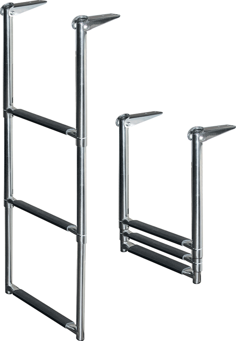 This ladder features rounded edges for comfort and safety, with a polished finish that complements any vessel's aesthetic. The telescoping action keeps the ladder out of the water when not in use, reducing drag and marine growth. Installation hardware included for secure mounting.