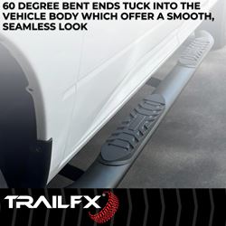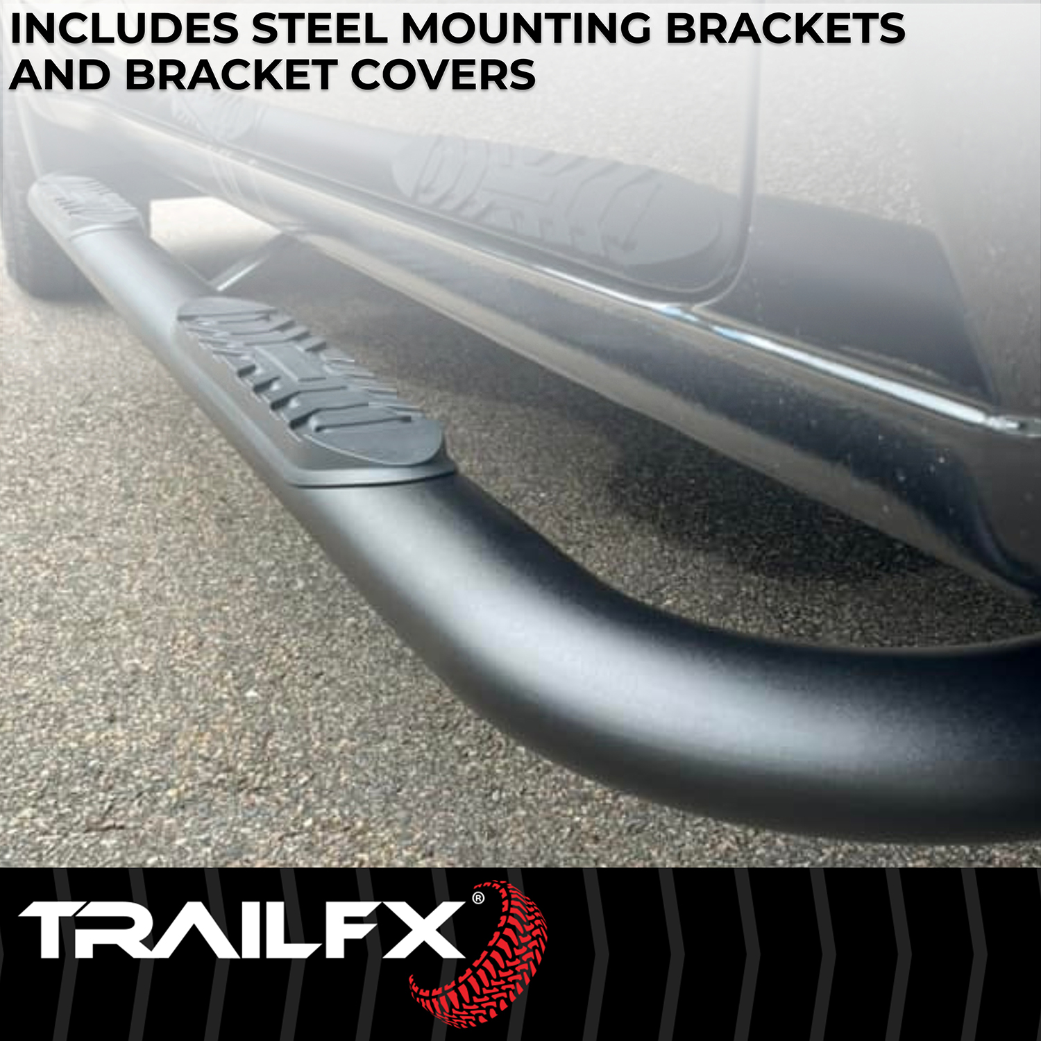 TrailFX nerf bars combine functional protection with style enhancement, making entry and exit easier while protecting your vehicle's rocker panels from road debris and minor impacts. The oval tube profile offers a modern look that complements both work trucks and recreational SUVs.
