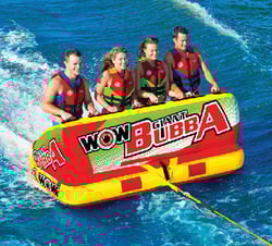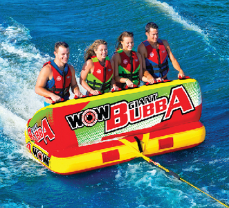 The WOW Bubba Hi-Vis towable tube brings exciting water sports action to the whole family with its versatile couch-style design that accommodates 1-4 riders. This popular tube features a secure deck seating configuration with extra-high backrests and sidewalls that help younger riders feel confident on the water while providing the support needed for fast, bouncy rides.