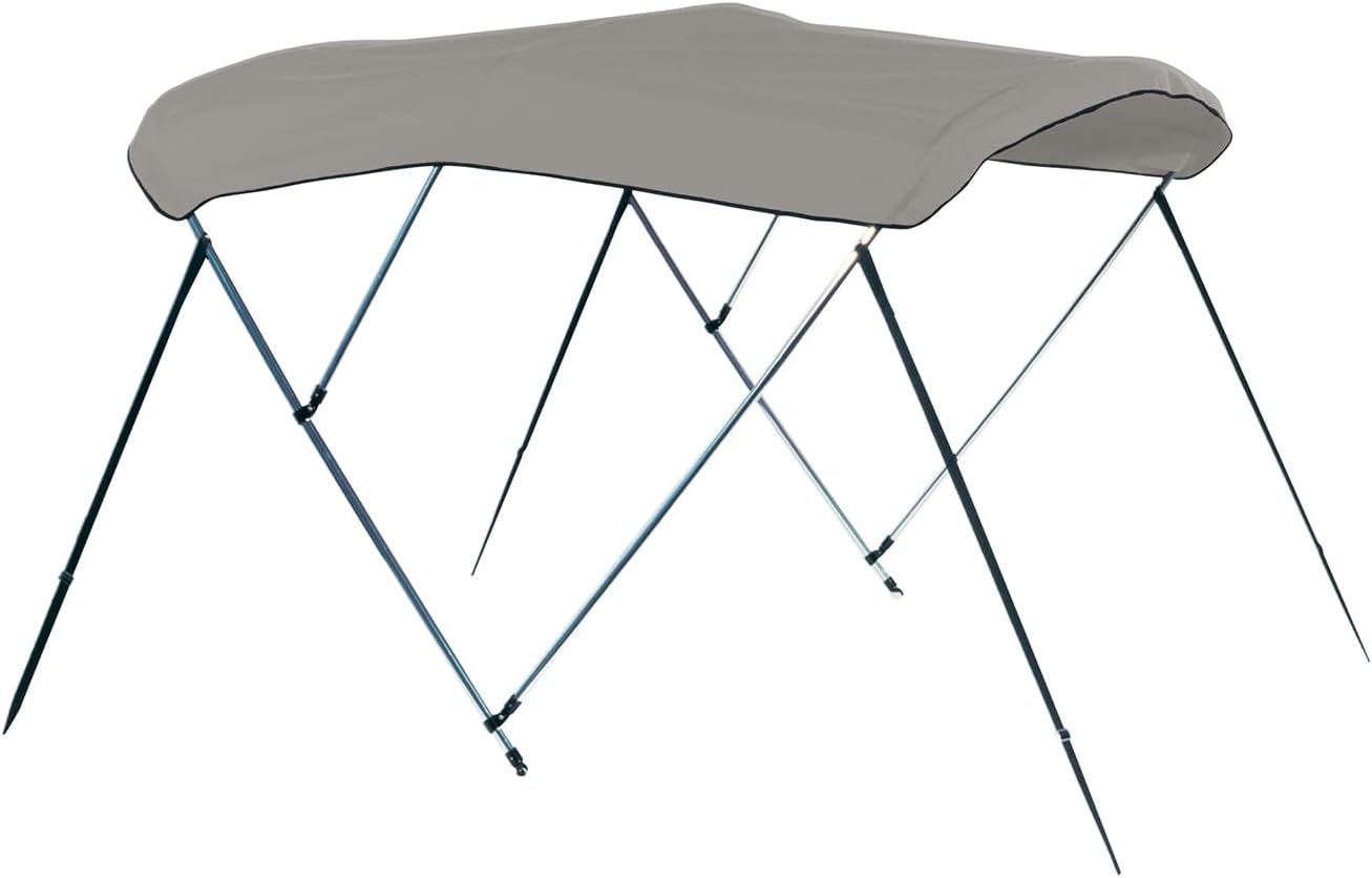 The Carver Covers 401A05 is a 3-bow round tube bimini top designed to provide superior sun and weather protection for center console fishing boats, Whaler-style boats, and bay boats. This complete bimini top kit measures 6 feet long with a 54-inch height, making it ideal for boats requiring extra headroom clearance.