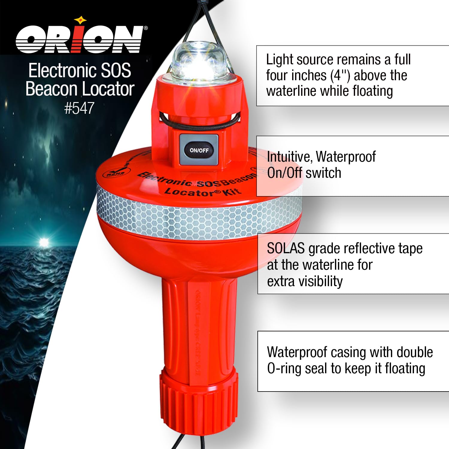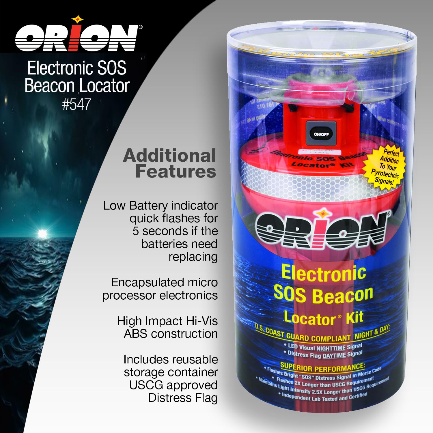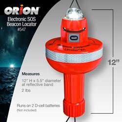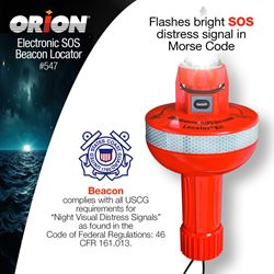 The Orion 547 Locator Electronic SOS Beacon Signal Kit provides reliable, long-duration electronic distress signaling that complements pyrotechnic signals for complete maritime safety coverage. This U.S. Coast Guard compliant electronic distress signal light is designed to provide passive, continuous SOS signaling when you need it most.