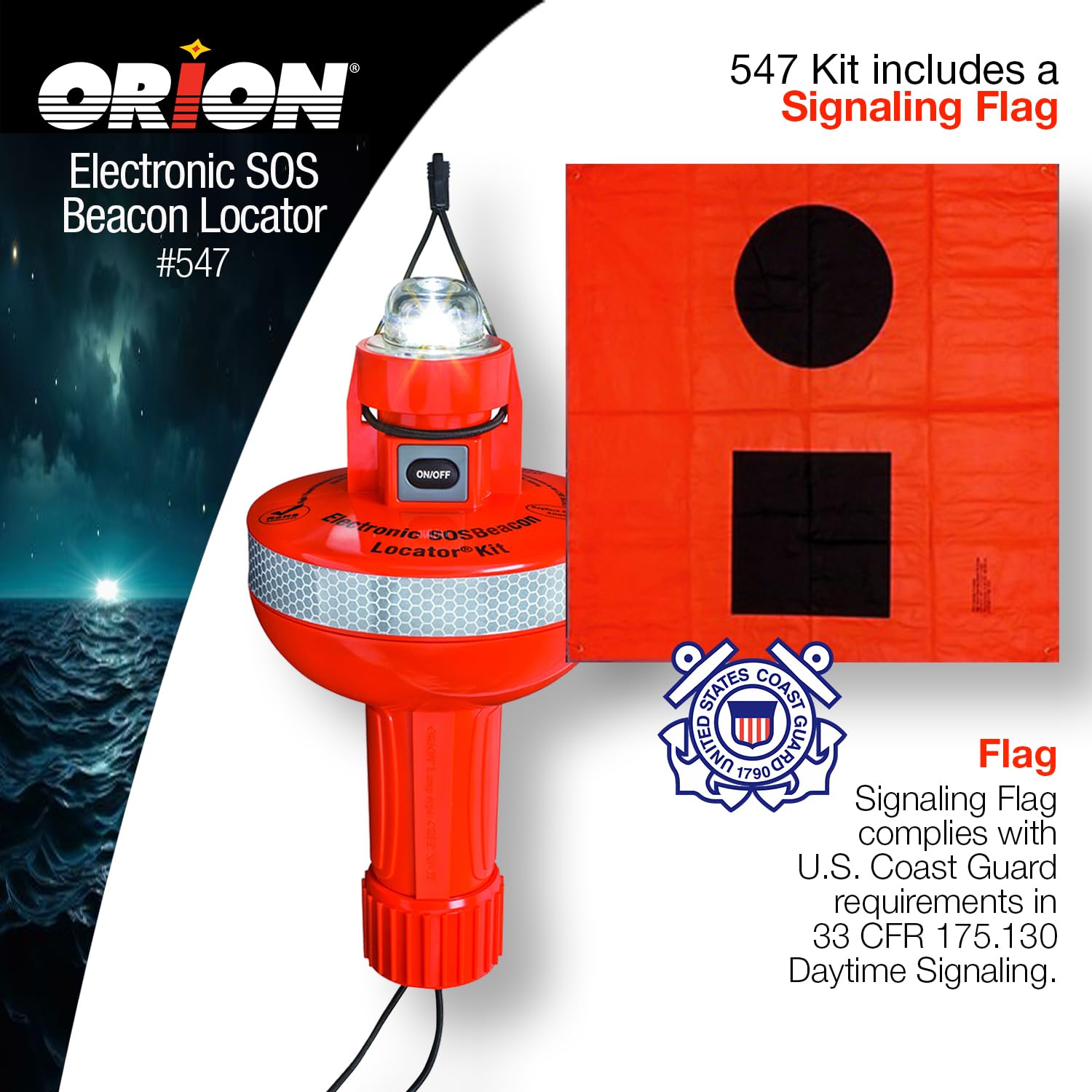 Orion 547 Electronic SOS Beacon Signal Kit USCG Compliant with Distress Flag
