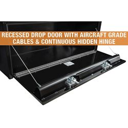 This underbody tool box is ideal for contractors, fleet vehicles, and truck owners who need weatherproof storage without sacrificing bed space. The recessed drop door design allows for convenient access while maintaining a low profile underneath the vehicle.
