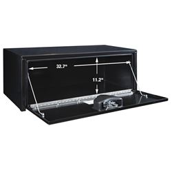 The Buyers 1703305 underbody truck toolbox provides secure, weather-resistant storage for tools and equipment beneath your truck bed or chassis. This robust steel toolbox features a smooth black gloss powder coat finish that resists rust and corrosion while maintaining a professional appearance.