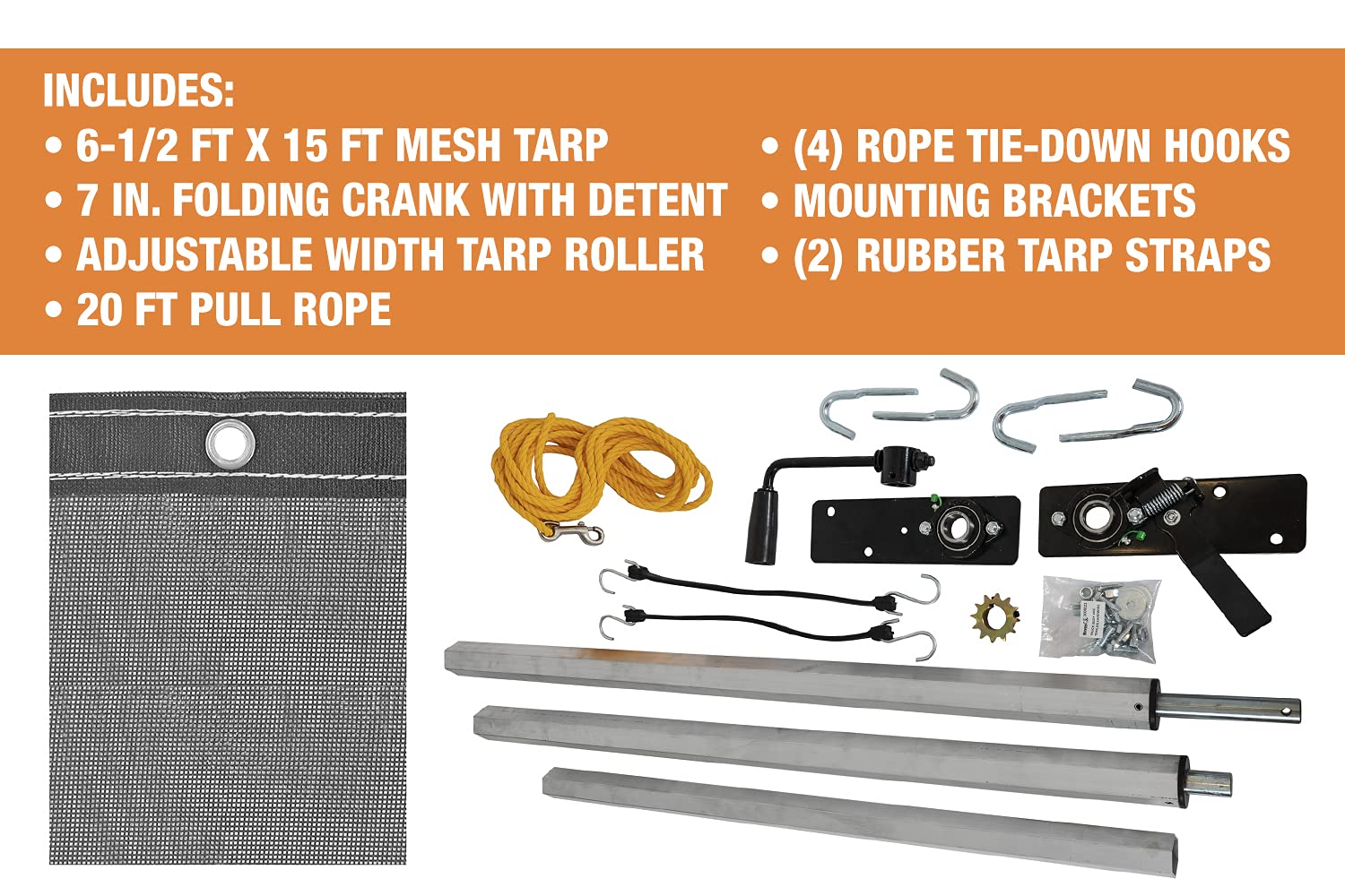 The Buyers DTR6515 Tarp Roller Kit provides a complete manual tarping solution for dump bodies and dump truck beds. This heavy-duty kit includes everything needed for quick and efficient load coverage and protection.