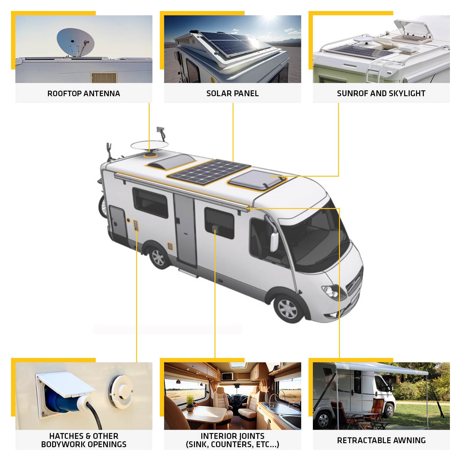 Sikaflex 221 is widely used in marine deck hardware installation, RV body panel bonding, automotive window sealing, and general construction applications where a flexible, durable, weather-resistant seal is required. The 10.3 oz cartridge is compatible with standard caulking guns for easy application.