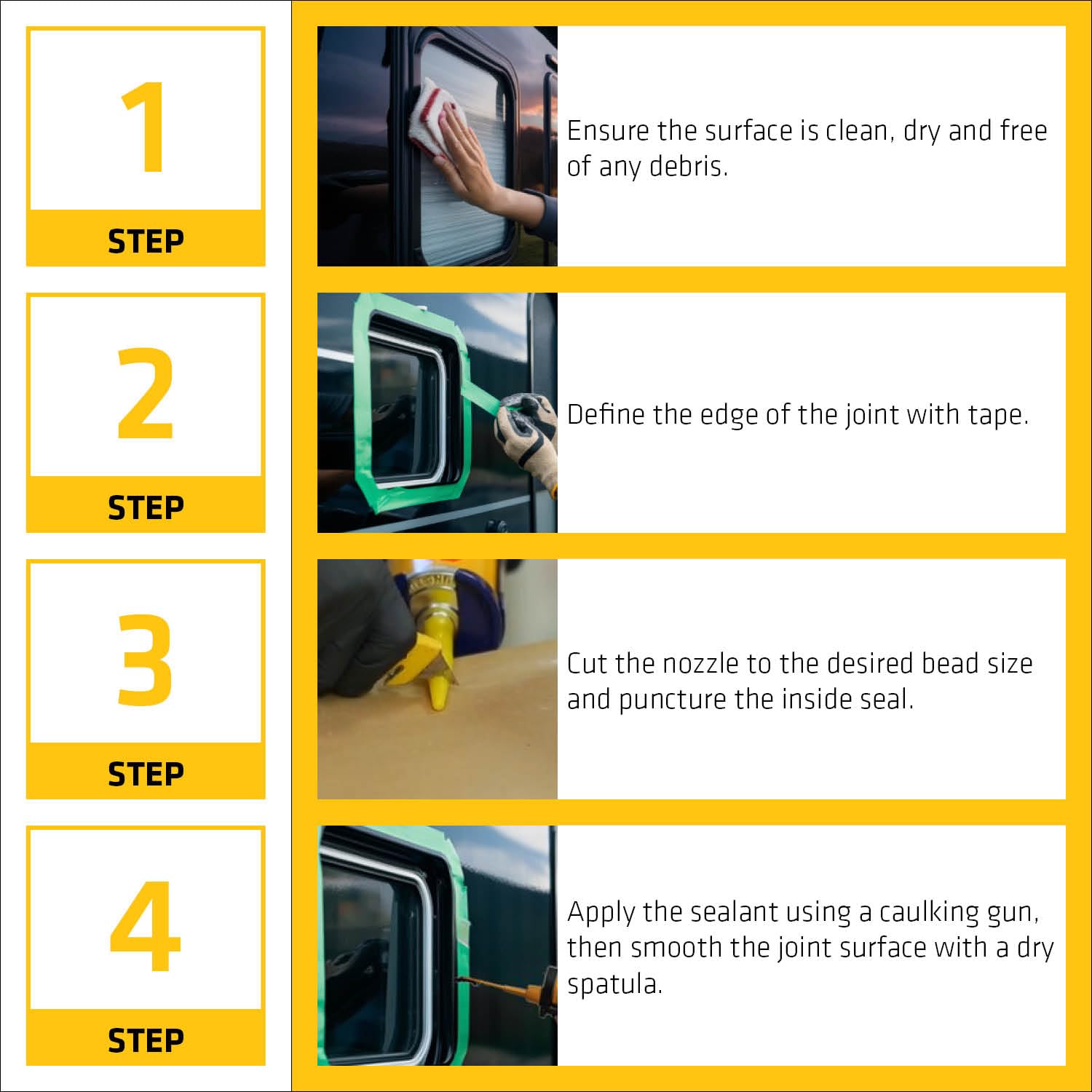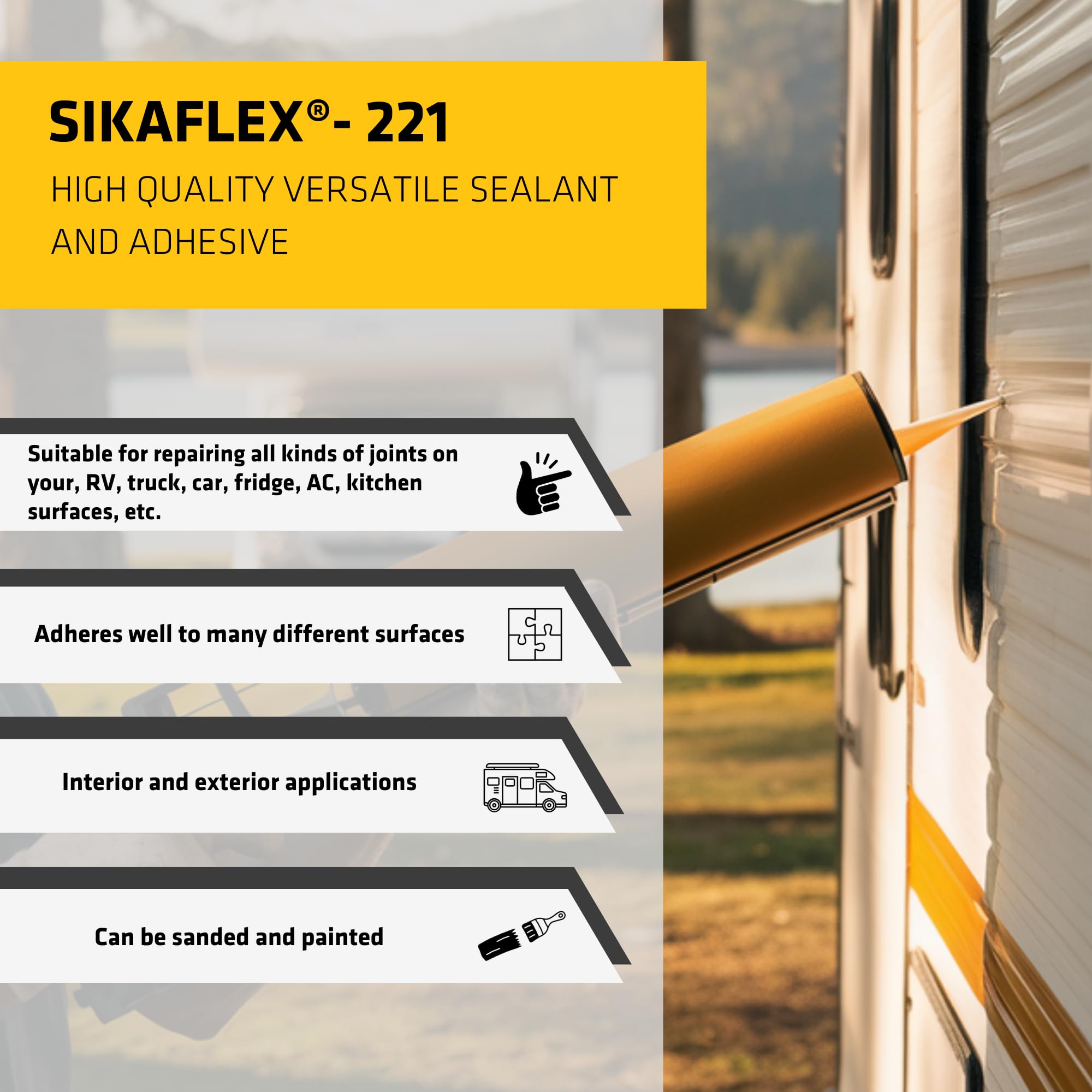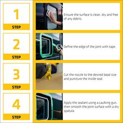 • Waterproof seal ideal for joints, seams, doors, windows, and panel bonding