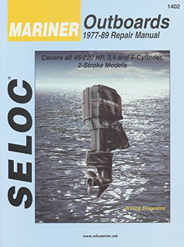 The Sierra 18-01402 Seloc Marine repair manual provides comprehensive service and maintenance information for Mariner outboard motors manufactured from 1977 to 1989. This professional-grade manual covers a wide range of engine configurations including 3-cylinder, 4-cylinder, in-line 6-cylinder, and V6 models ranging from 45 to 220 horsepower.