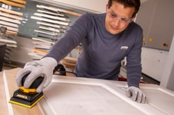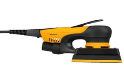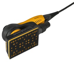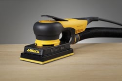 The Mirka Deos is a compact electric orbital sander designed for precision and efficiency in professional sanding applications. With a low-profile design at only 10 cm (4 inches) high, this lightweight tool delivers exceptional maneuverability for detailed work and hard-to-reach areas.