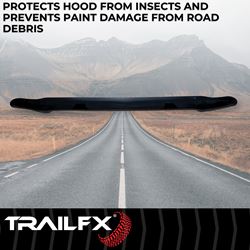 The TrailFX 8489H Hood Protector delivers comprehensive protection for your truck or SUV's hood against bugs, rocks, and road debris that can cause paint chips and scratches. This smoke-tinted acrylic bug shield features a wrap-around design that provides excellent coverage while adding a sleek, modern appearance to your vehicle.