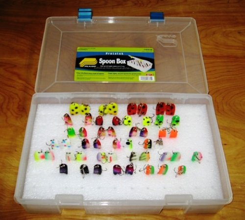 The Plano ProLatch Spoon Box is designed specifically for anglers who need organized, secure storage for their spoon collection. This clear tackle box holds up to 39 spoons measuring up to 3 inches long, making it ideal for panfish, trout, and bass fishing applications.