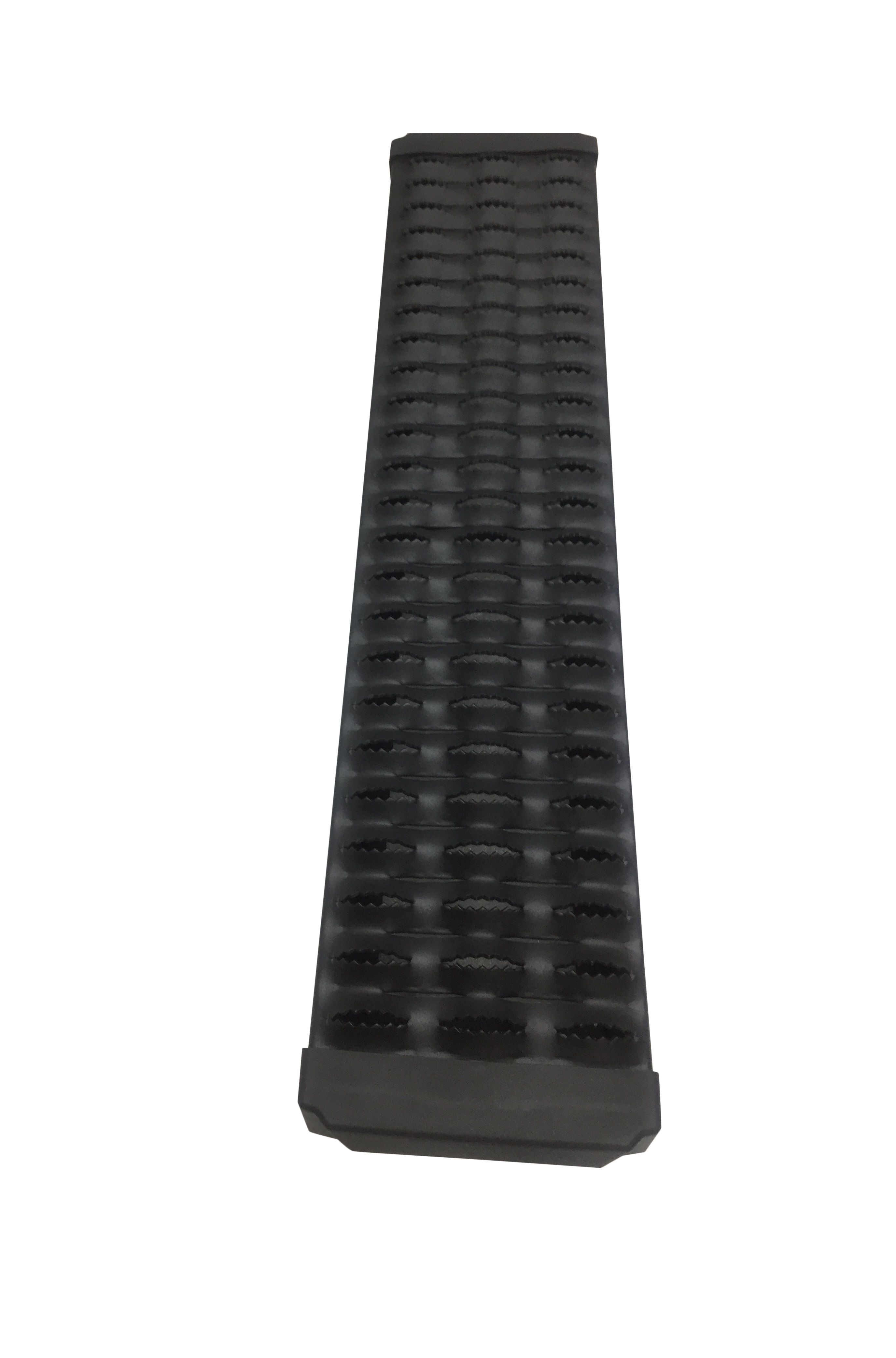 The TrailFX G5013 is a sample piece of their aggressive-style running boards, featuring a durable black finish. This sample allows you to examine the quality, texture, and finish of TrailFX's aggressive running board line before purchasing a full set for your truck or SUV.