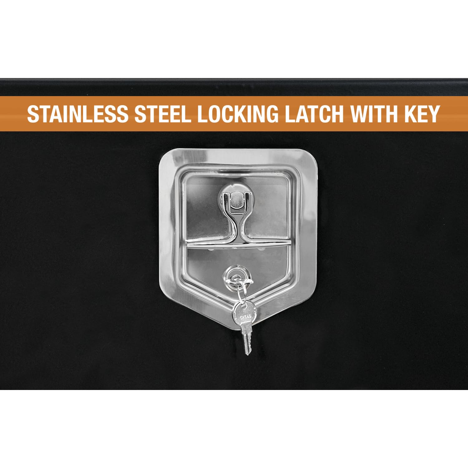 This toolbox is perfect for contractors, fleet vehicles, and truck owners who need compact, secure storage without sacrificing valuable bed space. The recessed door design minimizes ground clearance impact while the powder-coated finish ensures long-lasting durability in harsh working conditions.