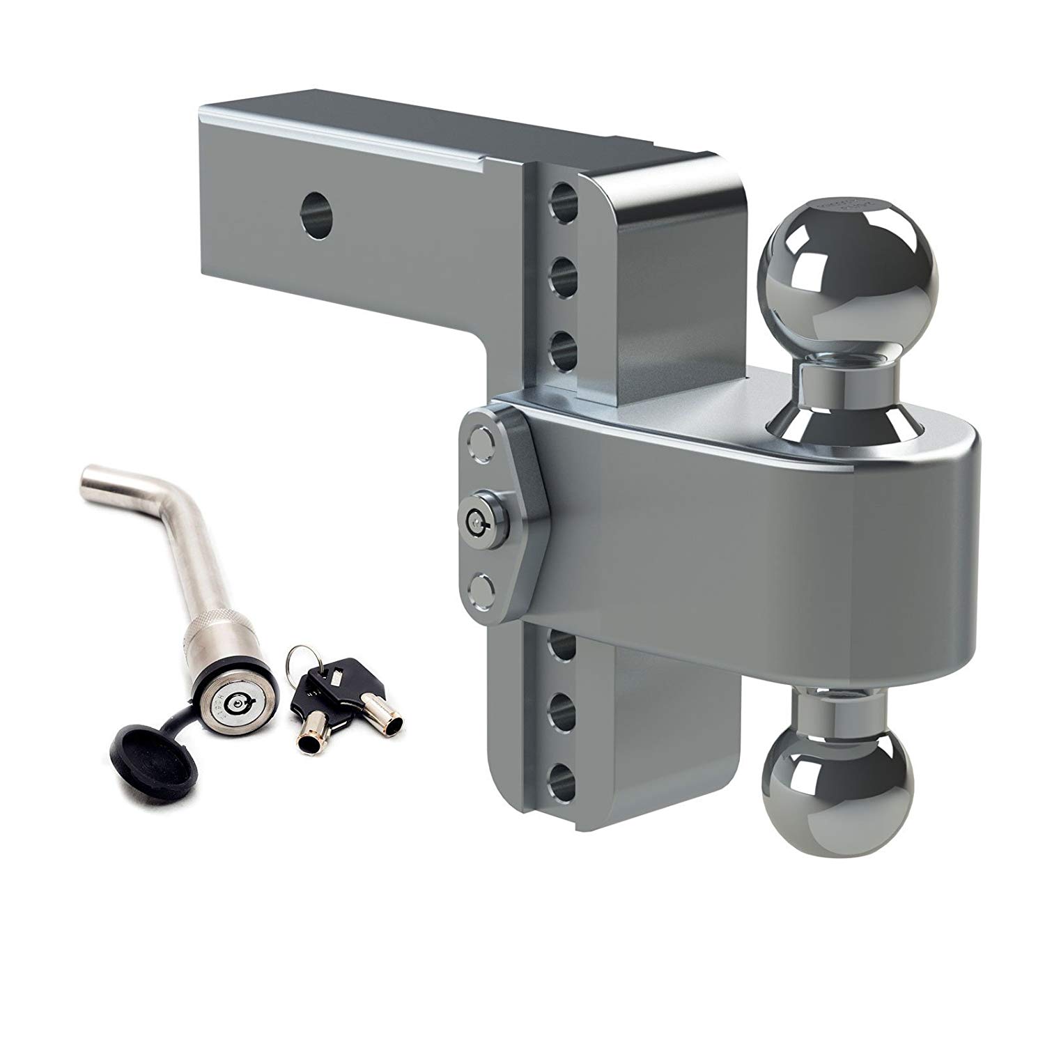 The adjustable design eliminates the need for multiple ball mounts, making it ideal for users who tow different trailers at varying heights. The included keyed-alike locking pin set provides security for both the ball mount and hitch pin, with matching keys for convenience. Built from aircraft-grade aluminum with stainless steel components, this ball mount delivers professional-grade performance for trucks, SUVs, and other towing vehicles.
