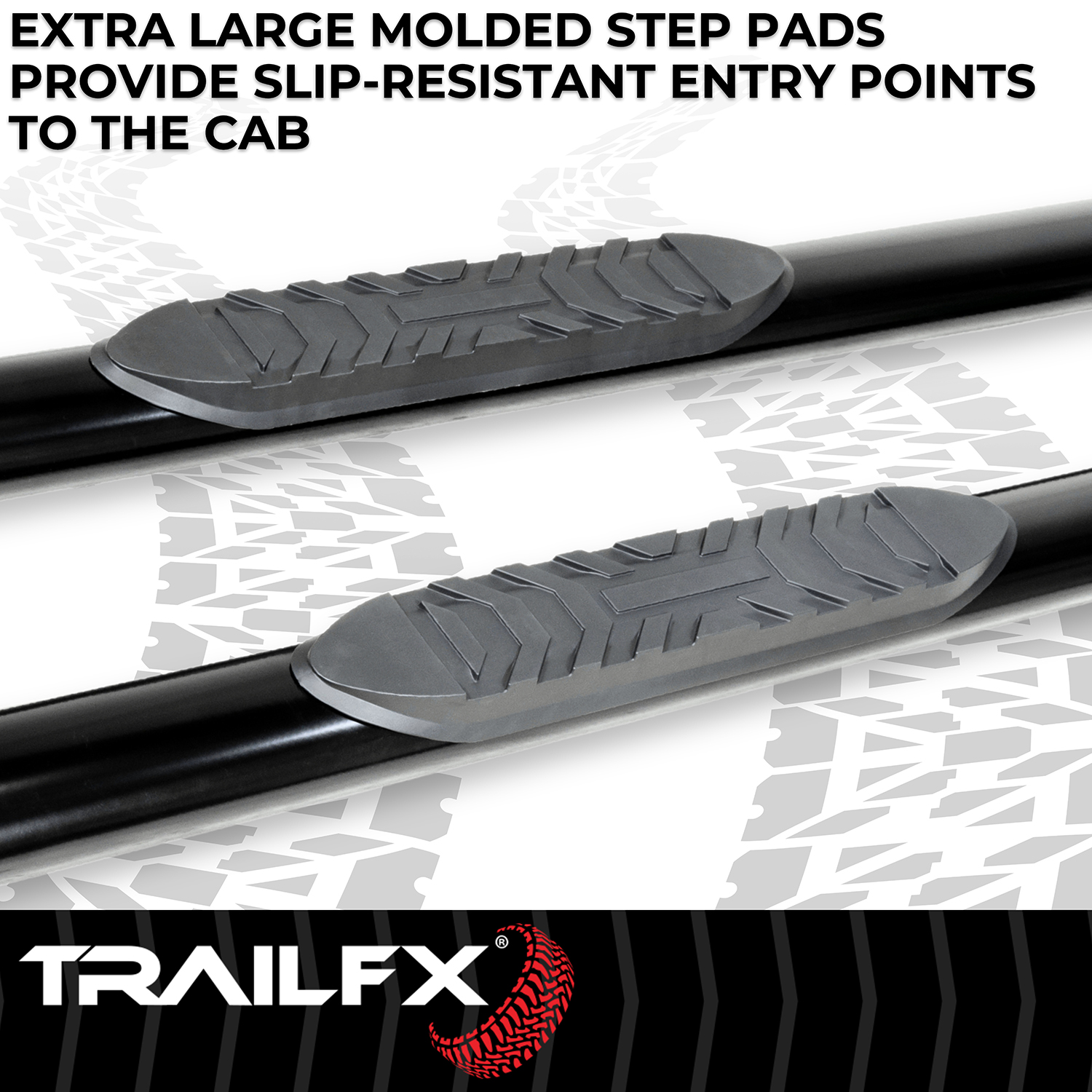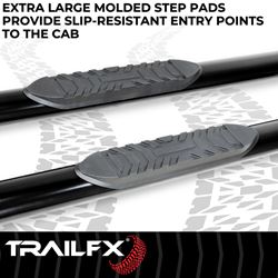 The TrailFX A1543B oval side step bars combine rugged functionality with a sleek, modern appearance. Featuring a 4-inch oval tube design, these step bars provide an extra-wide stepping surface for secure footing when entering and exiting your vehicle.