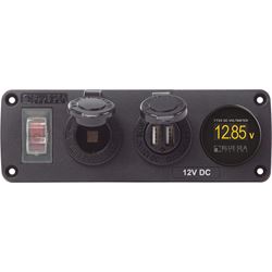 Blue Sea Systems 4366 Water-Resistant Accessory Panel, Circuit Breaker, 12V Socket, Dual USB Charger, Mini Voltmeter