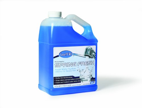 The Camco TastePURE Spring Fresh Water System Cleaner is a convenient, safe solution for maintaining fresh, clean water in your RV, marine, or trailer fresh water system. This biodegradable formula effectively cleans and deodorizes holding tanks and water lines, leaving a pleasant spring fresh scent.