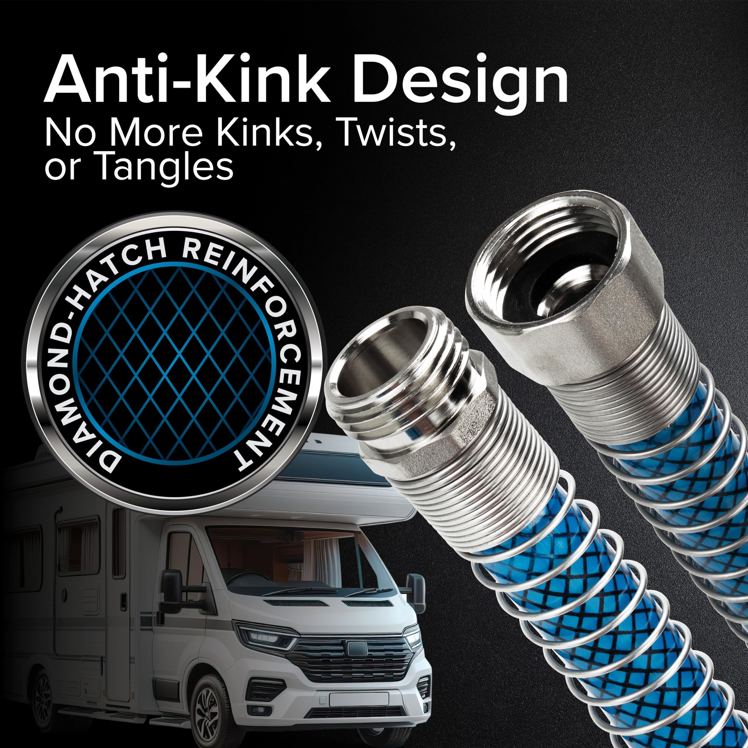 The Camco 22853 Premium Drinking Water Hose is engineered specifically for safe potable water delivery to RVs, boats, and marine applications. This NSF-certified hose ensures fresh, clean water without the plastic taste common in standard garden hoses.