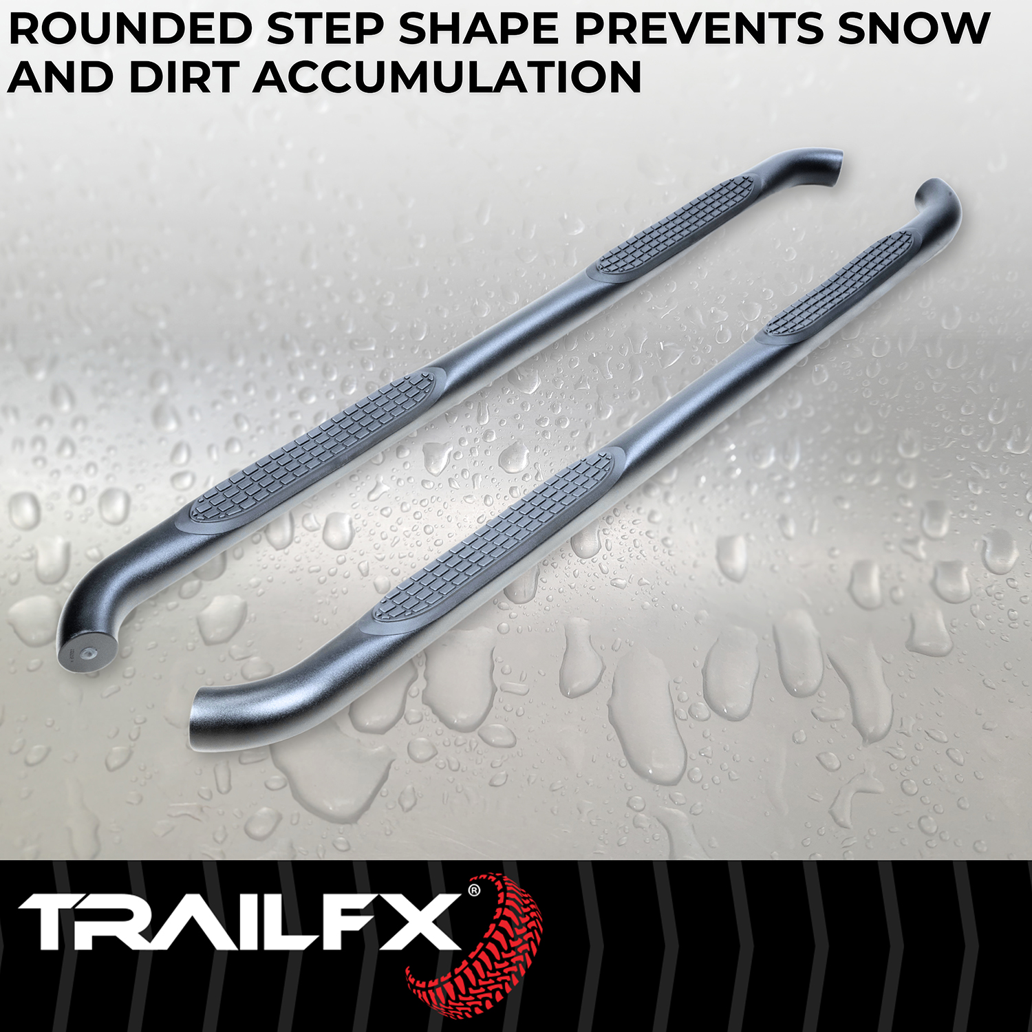 TrailFX step bars deliver both style and function, making entry and exit easier while giving your Jeep a more commanding presence. The 3-inch round design offers a traditional nerf bar aesthetic that's especially beneficial for lifted applications or off-road enthusiasts who need reliable footing on uneven terrain.