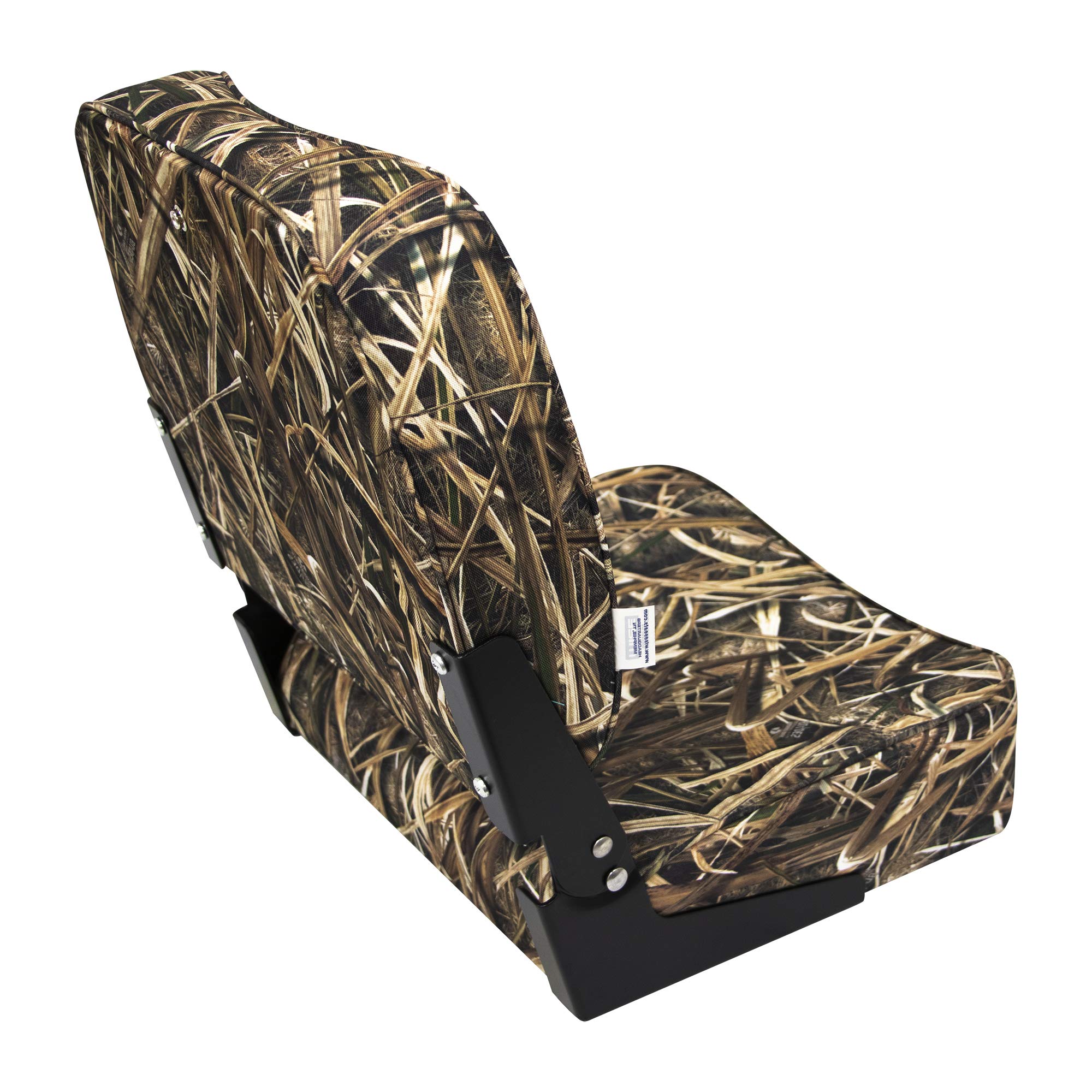 The Wise Seating 8WD618PLS-728 is a durable fold-down boat seat featuring authentic Mossy Oak Shadowgrass Blades camouflage pattern, ideal for hunters and anglers who need versatile seating that blends with wetland environments. This compact seat provides comfortable seating when you need it and folds flat when you don't, maximizing deck space on your boat or watercraft.