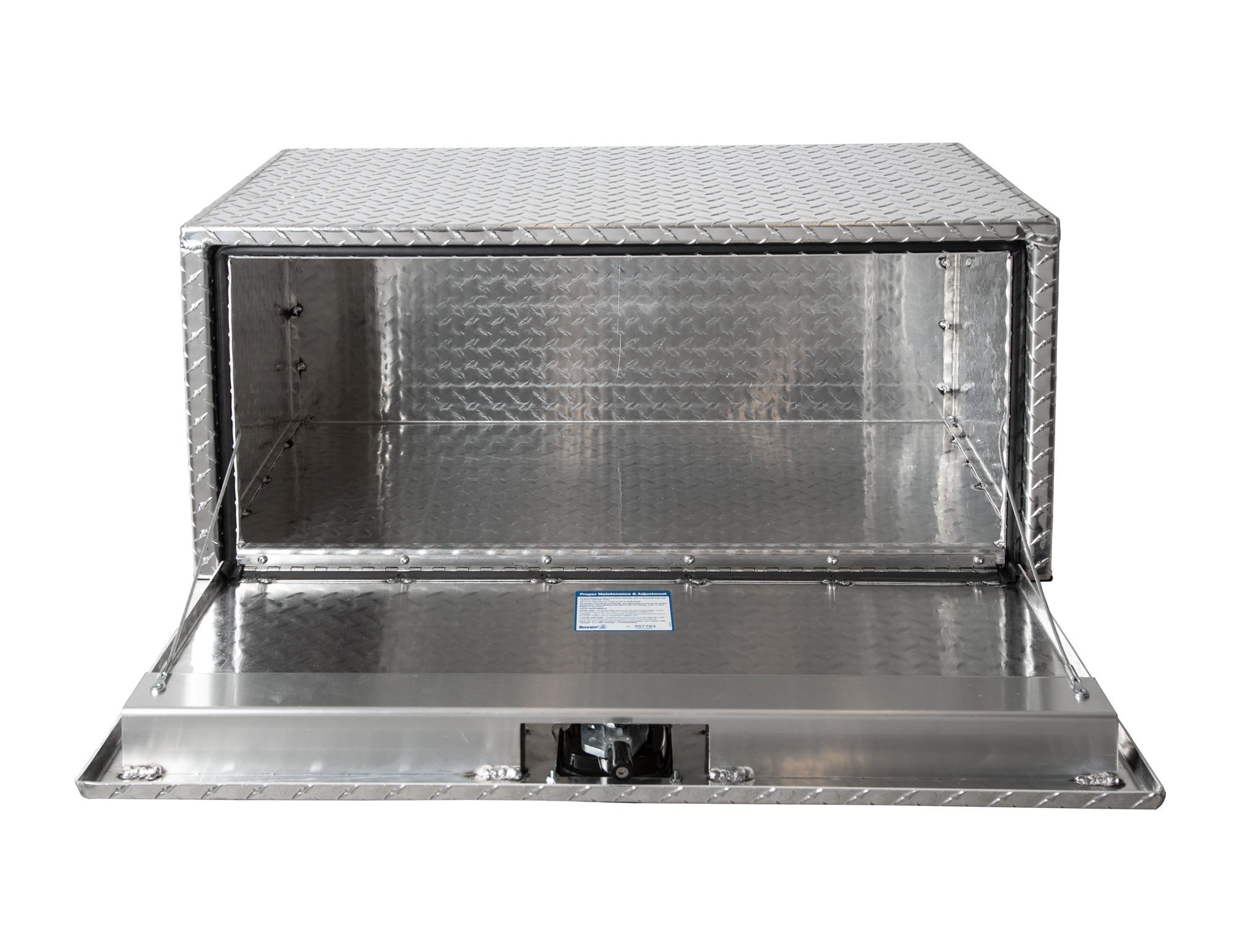 This underbody box is perfect for contractors, fleet vehicles, and truck owners who need additional secure storage without sacrificing truck bed space. The aluminum construction keeps weight down while maintaining structural integrity, and the diamond tread pattern provides both style and slip-resistance when accessing the box.