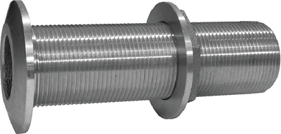 This thru-hull fitting is ideal for cockpit drains, livewell systems, washdown applications, and other below-waterline installations where extended length is required. The dual thread pattern ensures compatibility with standard marine hose barbs and valves.