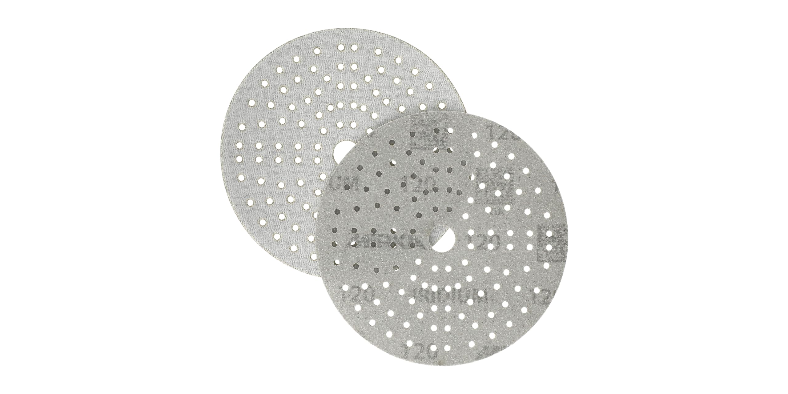 These 6-inch, 120-grit discs come in a convenient 50-pack and are designed for use with dual-action sanders. The Iridium line's advanced abrasive technology delivers exceptional performance in automotive refinishing, woodworking, and industrial surface preparation applications where consistent results and extended abrasive life are essential.