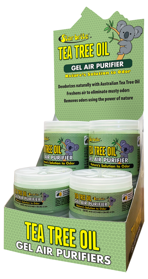 Star brite's Tea Tree Oil Air Purifier Gel uses natural tea tree oil extracts to neutralize odors rather than masking them. The gel formula provides long-lasting freshness in boats, RVs, vehicles, closets, and other enclosed spaces. The countertop display format makes this an ideal retail package for marine stores, auto parts retailers, and RV dealerships looking to offer customers a proven odor control solution.