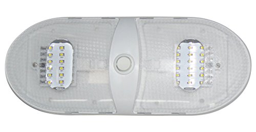 The Valterra DG654301VP Slim Line Double LED Dome Light provides bright, energy-efficient illumination for RVs, campers, boats, and other 12V applications. This low-profile pancake-style fixture features 18 SMD diodes that produce a warm white light at 3500 Kelvin, delivering superior light output while consuming minimal power.