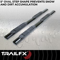 These side steps make entering and exiting your truck safer and easier while protecting your rocker panels from road debris and parking lot dings. The oval profile offers a modern look that complements the Silverado's bold styling without overwhelming the vehicle's lines. TrailFX backs these step bars with a limited lifetime warranty against defects in materials and workmanship.