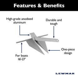 The Lewmar LFX anchor is engineered for small to mid-size boats requiring reliable holding power in a lightweight package. Made from high-grade anodized aluminum alloy, this 4 lb anchor delivers exceptional anti-corrosion performance with a sleek, durable finish that withstands harsh marine environments.