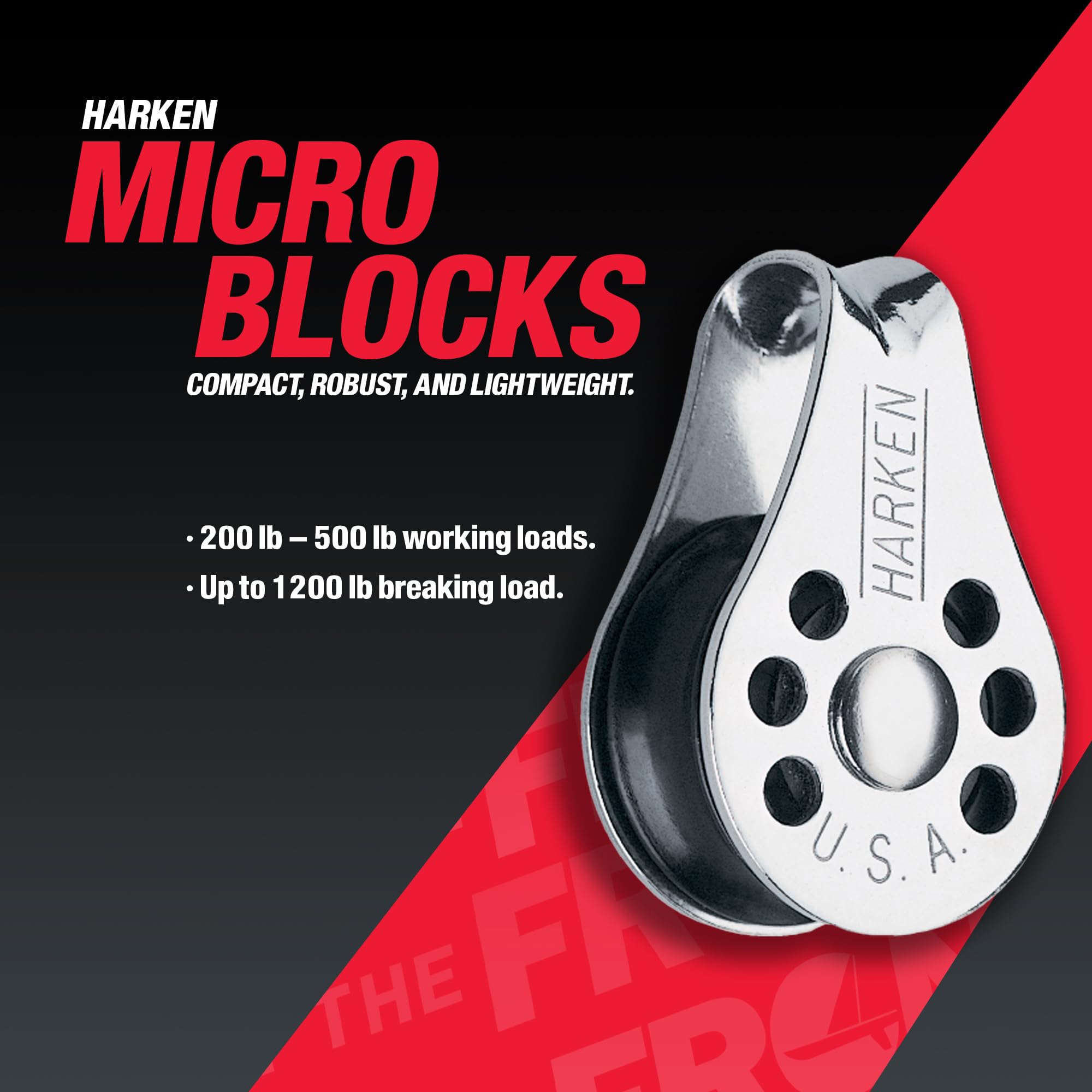 Harken 22mm Double Micro Block fits lines up to 1/4" diameter.