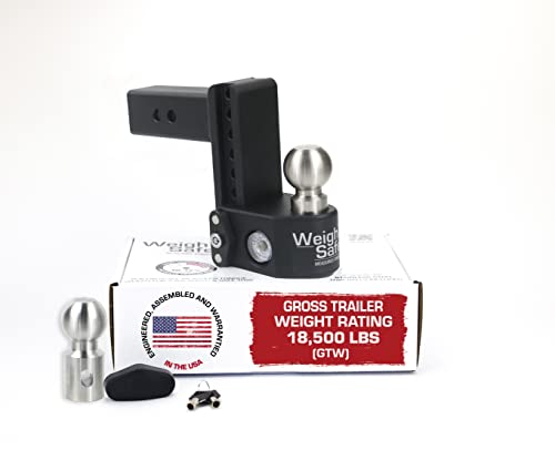 The Weigh Safe SWS6-2.5 is a premium adjustable trailer hitch ball mount designed for 2.5-inch receiver tubes, featuring an innovative built-in weight scale that measures tongue weight in real-time. This heavy-duty aluminum hitch provides a 6-inch adjustable drop for precise trailer leveling and supports up to 22,000 lbs gross trailer weight (GTW), making it ideal for large trailers, RVs, and heavy-duty towing applications.