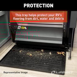 Protect your RV's entryway floor from dirt, debris, and moisture with the Lippert Components Solid Step All-Weather Entry Floor Tray. This heavy-duty mat is specifically designed to work with Lippert's Solid Step system, catching water, leaves, dirt, and debris before they make their way into your RV.