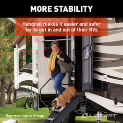 This entry assist handrail is an essential safety upgrade for 5th wheel RVs, travel trailers, and motorhomes. The adjustable locking pin system ensures a secure, customized fit, while the fold-away design means no removal or disassembly is needed when traveling. Simply fold it into the doorway with your steps and you're ready to go.
