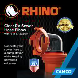 The Camco RhinoFLEX RV sewer elbow and 4-in-1 adapter provides a versatile, secure connection for RV waste disposal at any dump station. This innovative adapter fits securely into four different sizes of dump station inlets, eliminating compatibility concerns at campgrounds and RV parks.