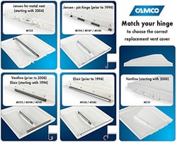 The Camco 40151 is a replacement vent lid designed specifically for Ventline FT08 Up roof vents. This fully assembled lid features a standard 14" x 14" size that fits most RV roof vents, providing protection from the elements while allowing proper ventilation.