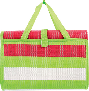 The Camco Handy Mat is a versatile outdoor mat designed for picnics, beach trips, camping, RVing, and any outdoor adventure. Measuring 60 inches by 78 inches when unfolded, this generously sized mat provides ample space for family gatherings and outdoor activities. The distinctive green, white, and red striped pattern adds a classic touch to your outdoor setup.