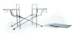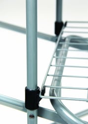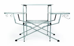 • Mesh lower shelf provides additional storage for utensils and supplies