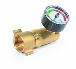 This water pressure regulator attaches inline between the campground water supply and your RV's water inlet. The built-in gauge provides visual confirmation of water pressure, giving you peace of mind that your RV's plumbing is protected. Compact and lightweight, it's an essential item for every RV toolkit.