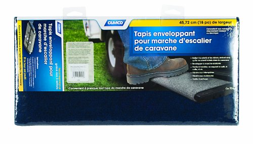 The Camco 42924 XL Step Rug provides an effective solution for keeping your RV interior clean by reducing tracked-in dirt and debris. Designed specifically for larger manual or electric RV steps, this 18-inch wide step rug offers enhanced coverage for wider step configurations.