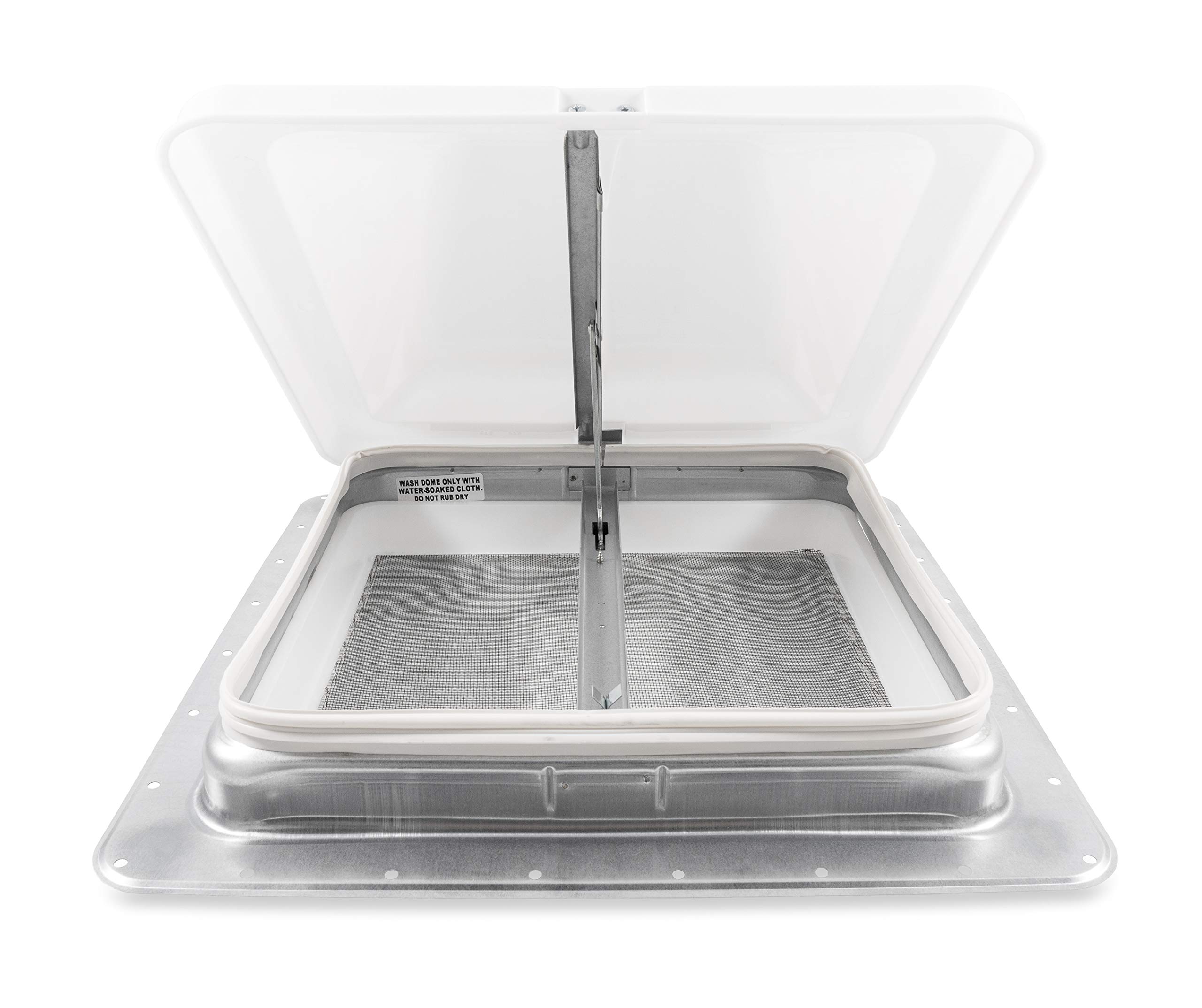 This roof vent is ideal for improving air circulation in your RV, reducing humidity, and preventing stuffiness. The manual operation requires no electricity, making it a dependable ventilation solution. The aluminum base construction provides long-lasting durability while the plastic cover resists UV damage and weathering.