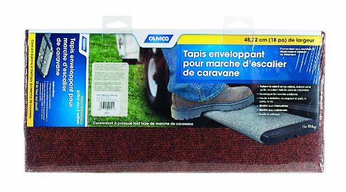 The Camco 42921 XL Step Rug is designed to protect your RV interior by reducing tracked-in dirt and debris from outdoor steps. This durable step cover is specifically sized at 18 inches wide to accommodate larger manual or electric RV steps.