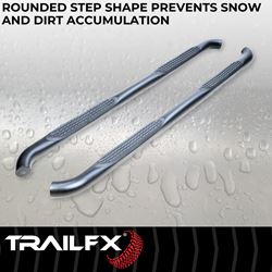 The TrailFX A0063T 3-inch nerf bars provide a rugged step solution for your 2019-2024 Jeep Gladiator JT. These black powder-coated steel nerf bars combine functional side step access with aggressive styling that complements the Gladiator's off-road character.