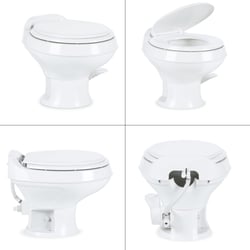The Dometic 311 Series Gravity Flush RV Toilet delivers powerful, reliable performance with a sleek, residential-style design. This white ceramic toilet features Dometic's best-in-class gravity flush system with a 360° vortex flush pattern that provides superior swirl-jet cleaning action for a thoroughly clean bowl with every flush.