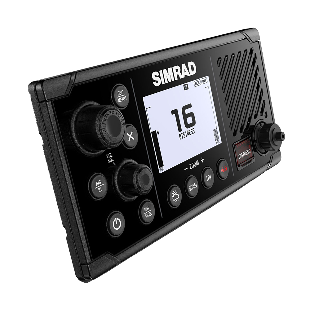 The Simrad RS40 is a fixed-mount marine VHF radio that combines Class D DSC functionality with integrated dual-channel AIS receiver and built-in GPS, providing comprehensive safety and communication capabilities for recreational and commercial vessels. This feature-rich radio offers seamless NMEA 2000 and NMEA 0183 connectivity for full system integration with compatible Simrad multifunction displays and chartplotters.
