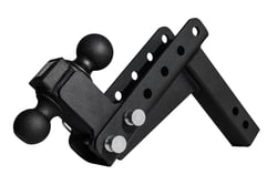 The adjustable design allows you to position the hitch balls at the perfect height for level towing, whether you need drop or rise positioning. The non-swivel, non-extendable solid steel construction ensures maximum stability and safety during transport. The black powder-coated finish provides corrosion resistance for long-lasting durability in all weather conditions.