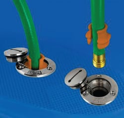 • Prevents hose from coming out of deck fill during filling