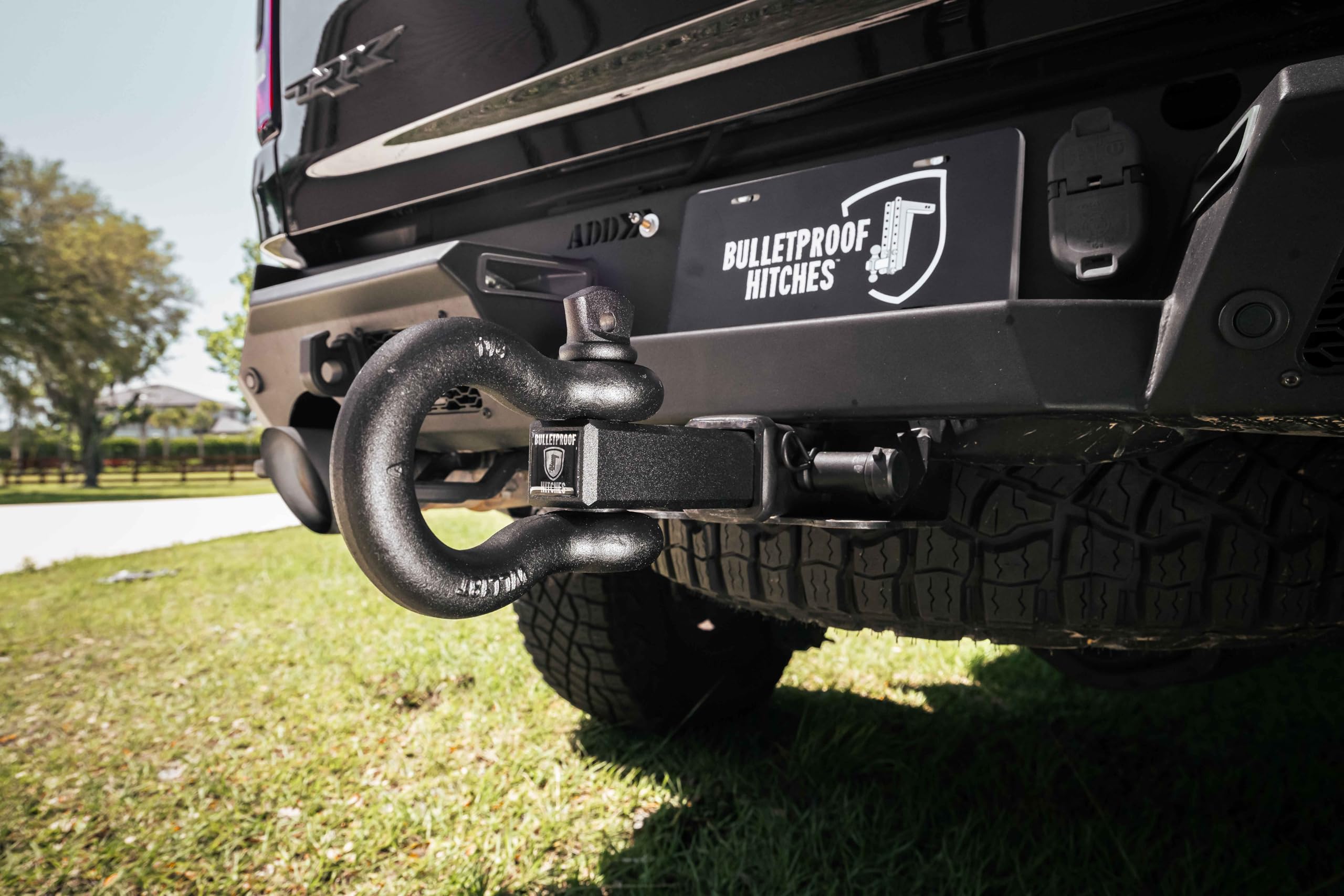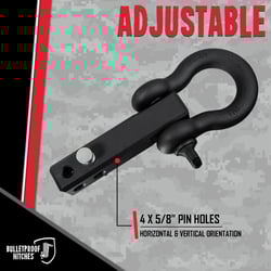 The Bulletproof Hitches ED20SHACKLE Extreme Duty Receiver Shackle is a heavy-duty hitch-mounted recovery point designed for off-road enthusiasts and vehicle recovery operations. This solid steel shackle provides a secure attachment point for straps, cables, ropes, or chains, offering a safer and more reliable alternative to frame-mounted tow hooks.